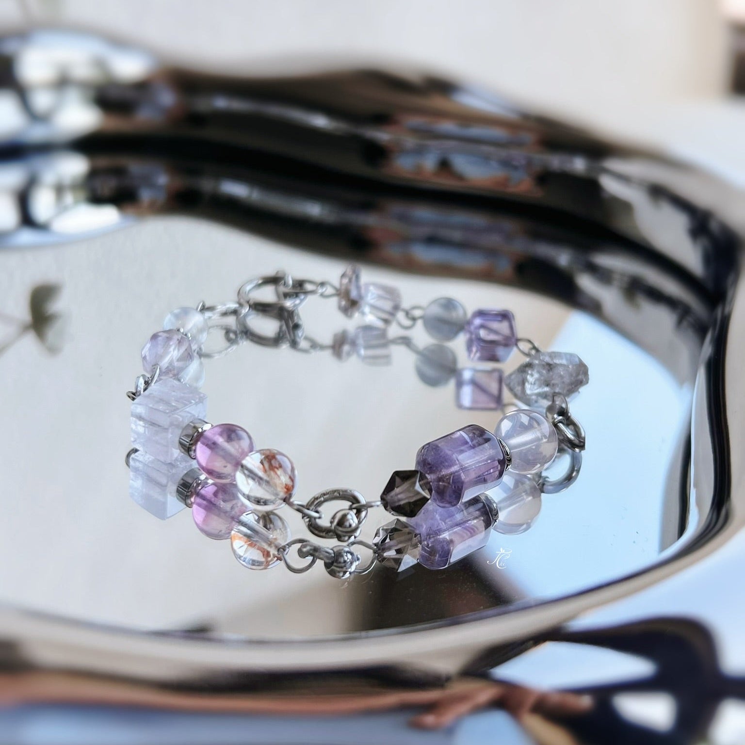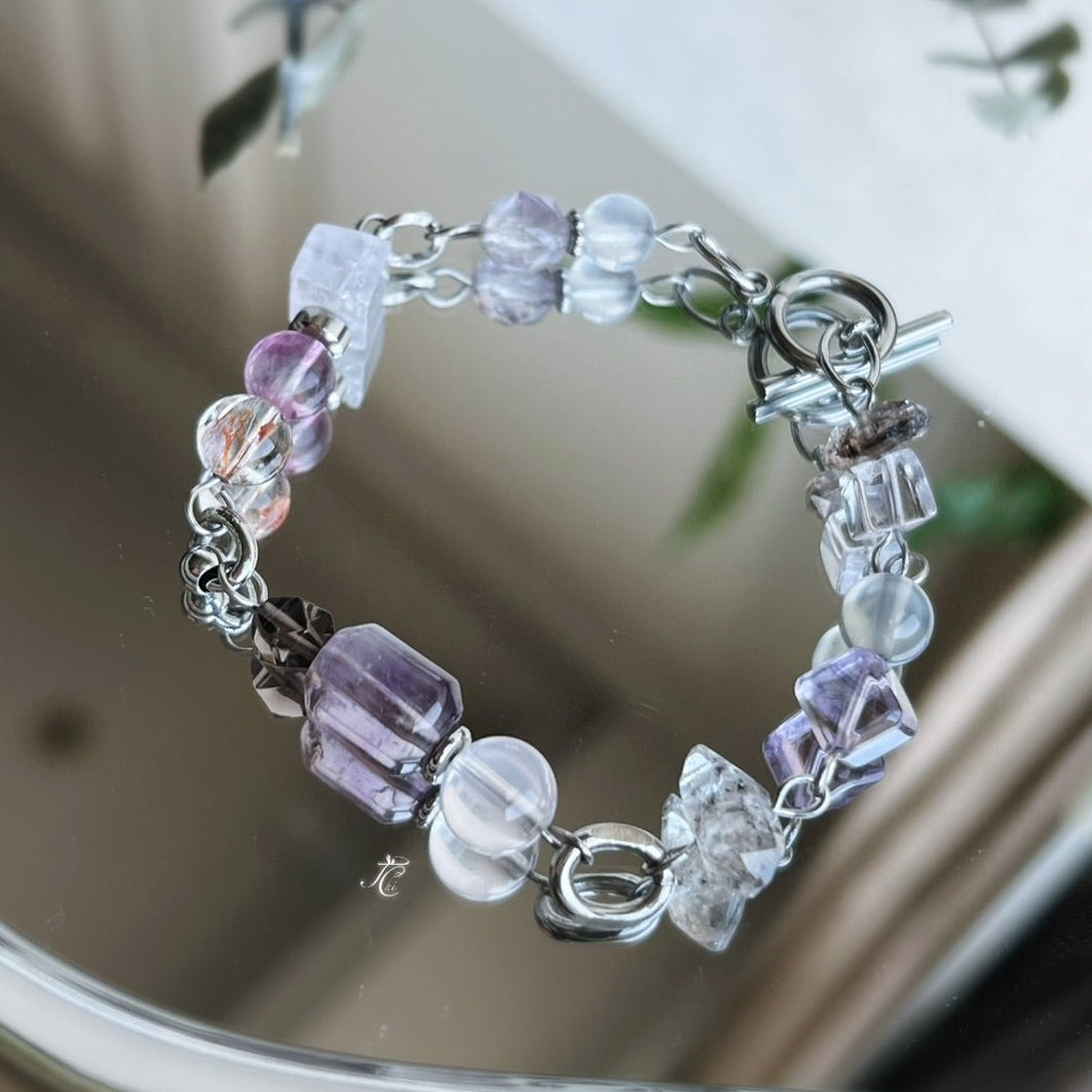 這次挑選不同深淺、不同透度、不同形狀的紫,像把一個人的多種面相放在手上:清晰的、收斂的、沉靜的、柔軟的,都有位置